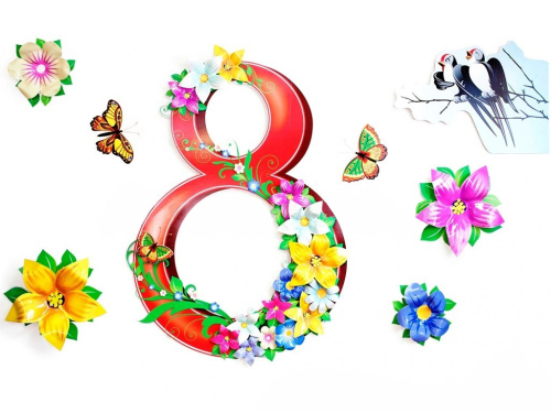 - эмблема восьмерки, украшенная объемными цветами, размеры (ШхВ) - 1000х1400 мм - 1 шт.;