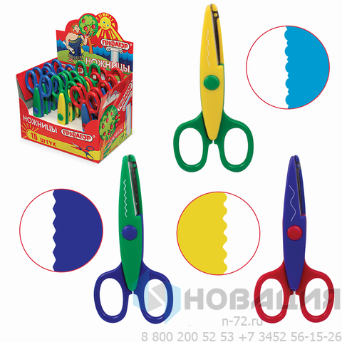 Ножницы ПИФАГОР, 135 мм, фигурное лезвие, ассорти, в дисплее, 230938