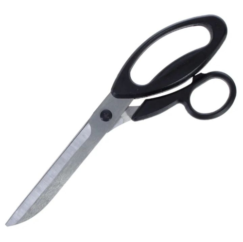 Профессиональные закройные ножницы с массивными лезвиями отличаются углом заточки, благодаря которому получается ровный срез.