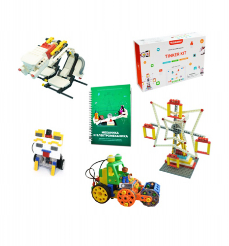 - Расширенный конструктор для изучения механических явлений. Групповая деятельность (2 шт) позволяет детям уже в раннем возрасте изучать основы механических явлений. В комплект входят конструктивные элементы, электронные компоненты и карточки для программирования.