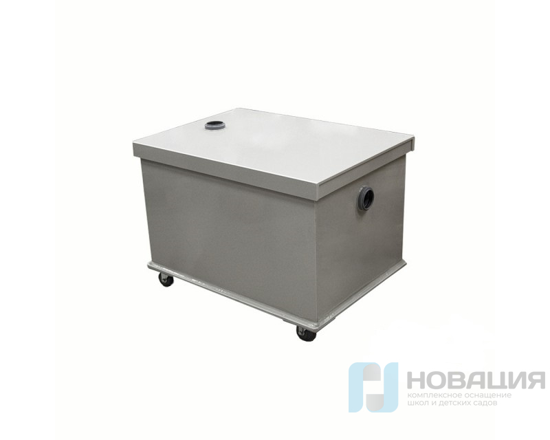 Конструкция сепаратора состоит из 3-х секций, выполненных из прочного полимерного материала. Оборудование оснащено четырьмя колесиками, облегчающими перемещение и установку на любую сливную линию. Место монтажа отстойника должно находиться непосредственно между раковиной и основной системой водоотведения. Периодически накопившийся осадок в резервуаре подлежит удалению вручную.
