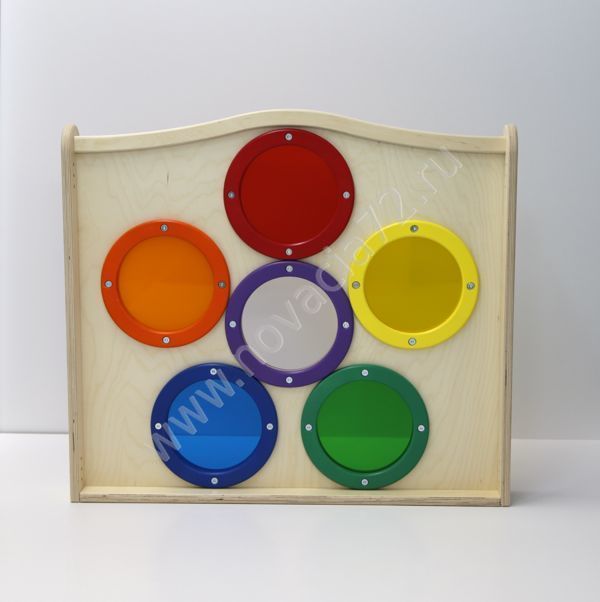 На панели расположены 6 разноцветных кругов из небьющегося стекла. Может использоваться для развивающих игр в качестве дидактического материала для изучения цветов.