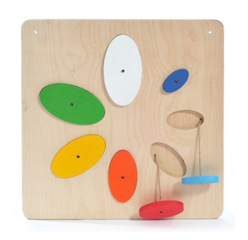 Рамка с вкладышами в виде лепестков поможет натренировать мелкую моторику. Круглые элементы держатся на веревочках. Цвета и размеры деталей различаются. Игра влияет на развитие логики и укрепляет памяти.