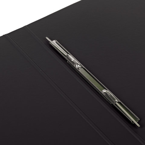 Изготовлена из высококачественного картона с ПВХ покрытием черного цвета. Обеспечивает хранение до 290 листов формата А4. Металлический скоросшиватель с пружинным механизмом обеспечит надежную фиксацию документов. Для идентификации папки имеется сменный бумажный корешок.
