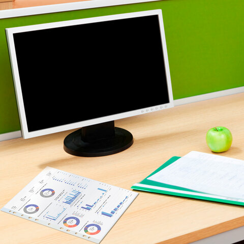 Перфопапки формата А4 с вертикальным размещением содержат универсальную перфорацию, а также имеют матовую поверхность и прочные швы. Файлы являются незаменимым атрибутом в офисе, позволяют систематизировать документы и обеспечивают их сохранность на долгое время. Изготовлены из прочной пленки толщиной 60 мкм. В комплект входит 100 перфопапок.