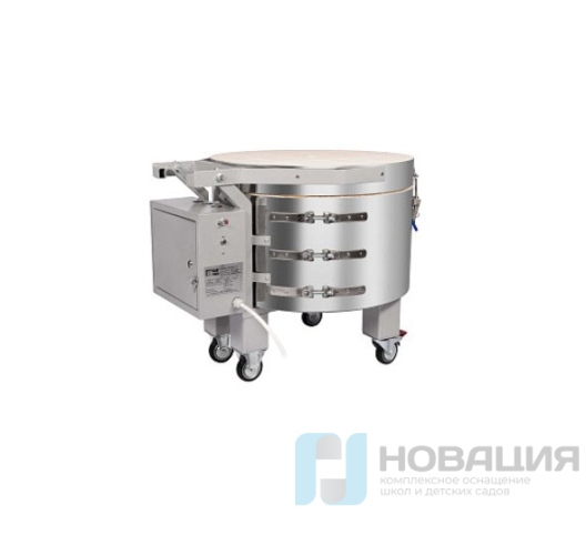 Печь с регулятором температуры ТП707 используется в гончарных мастерских. Устройство применяется для обжига керамических изделий. Конструкция с вертикальной загрузкой оснащается вентиляционным отверстием, через которое отводится влага. Спираль устанавливается в пазы между огнеупорными кирпичами защиты от механических повреждений. Печка дополняется поворотными и фиксированными колесами.