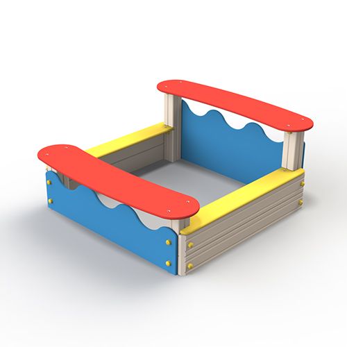 Комплекс включает в себя 4 несущих столба, бортики, 2 сиденья, 2 ограждения с волнообразной верхней стороной, 2 столешницы с закругленными углами. Элементы выполнены из влагостойких материалов, покрыты гипоаллергенной порошковой краской.