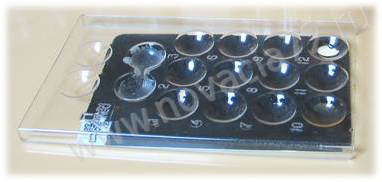 Планшетка представляет собой пластину из органического с текла с 16 ячейками. Двенадцать пронумерованных ячеек предназначены для проведения капельных реакций. Четыре ячейки, две из которых соединены каналом, предназначены для опытов с электрическим током.