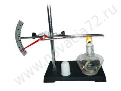 Прибор изготовлен из двух тонких пластин из стали и меди, склепанных вместе, и укрепленных одним концом на стержне-основе. Другой конец биметаллической пластины шарнирно соединен со стрелкой, ось которой вместе со штифтом для установки прибора на штативе, закреплена на стержне-основе. На стержне-основе укреплена шкала. При нагревании или охлаждении биметаллическая пластина изгибается в ту или другую сторону и стрелка перемещается по шкале вправо или влево.