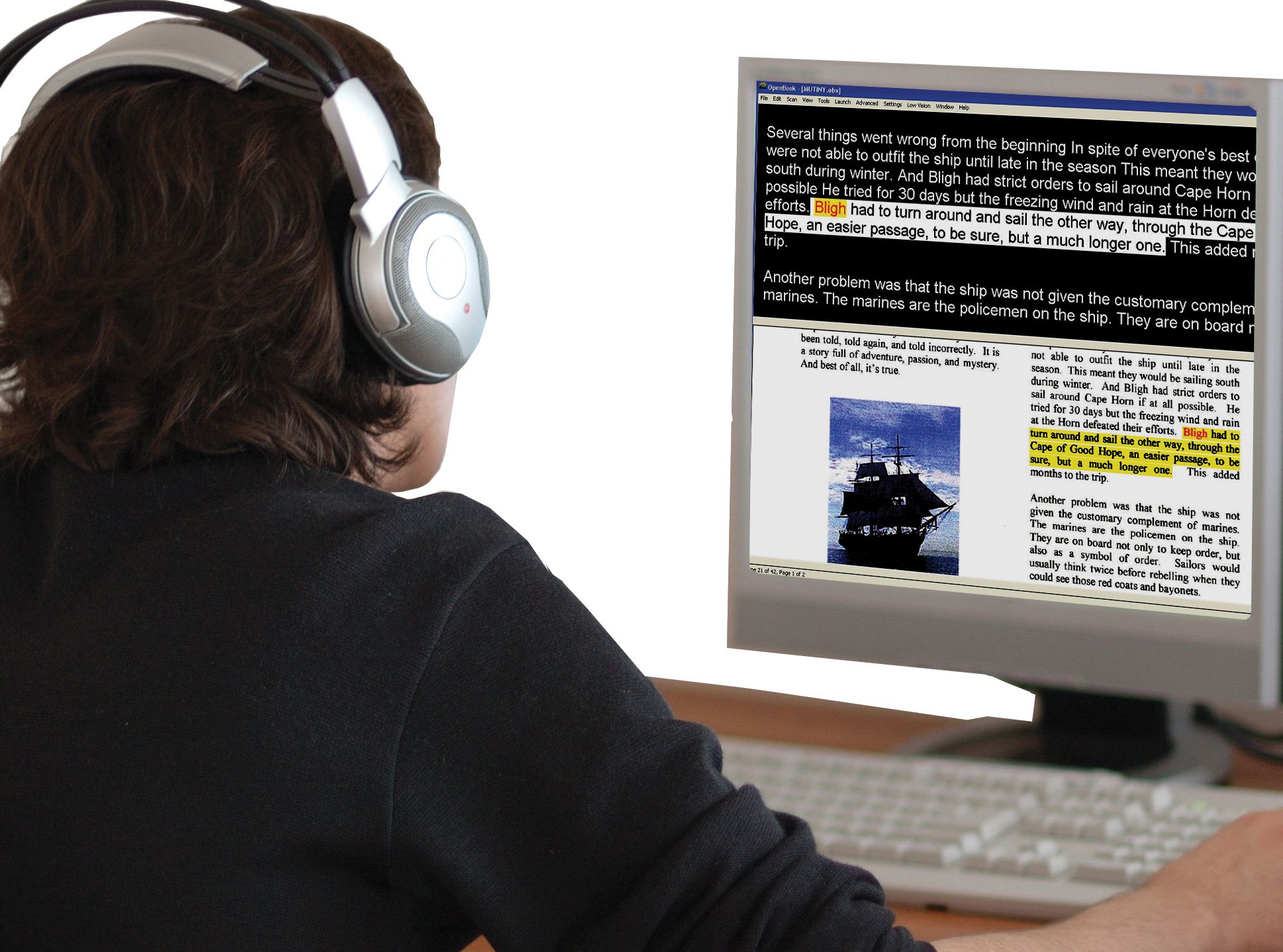 ПО для незрячих или слабовидящих людей сканирует документ (в том числе, графический) и читает его.