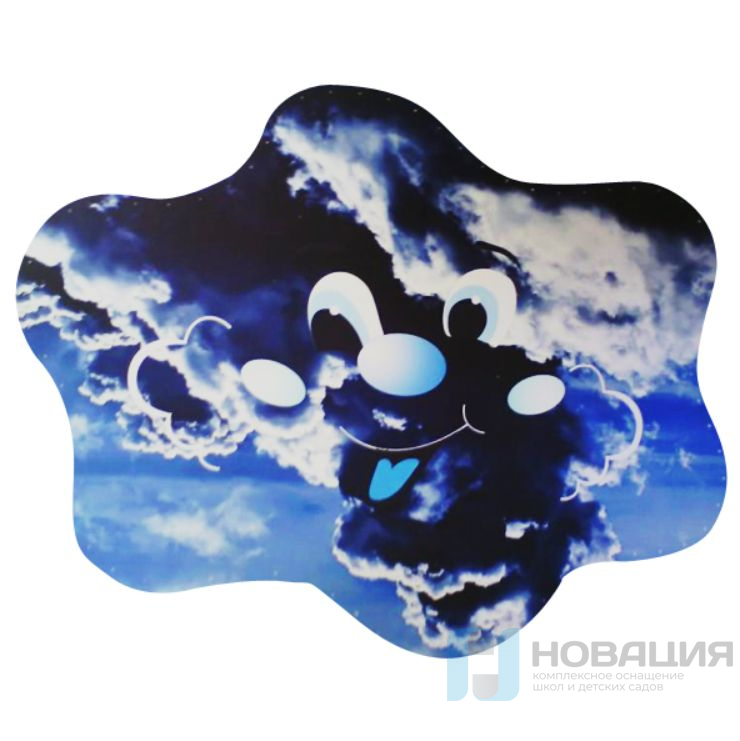 Подвесной элемент в виде тучи выполнен из пластиковой панели. Украшен декоративными глазками и улыбкой. Волокна имитируют дождь. Конструкция сопровождается эффектом вспышек молнии.