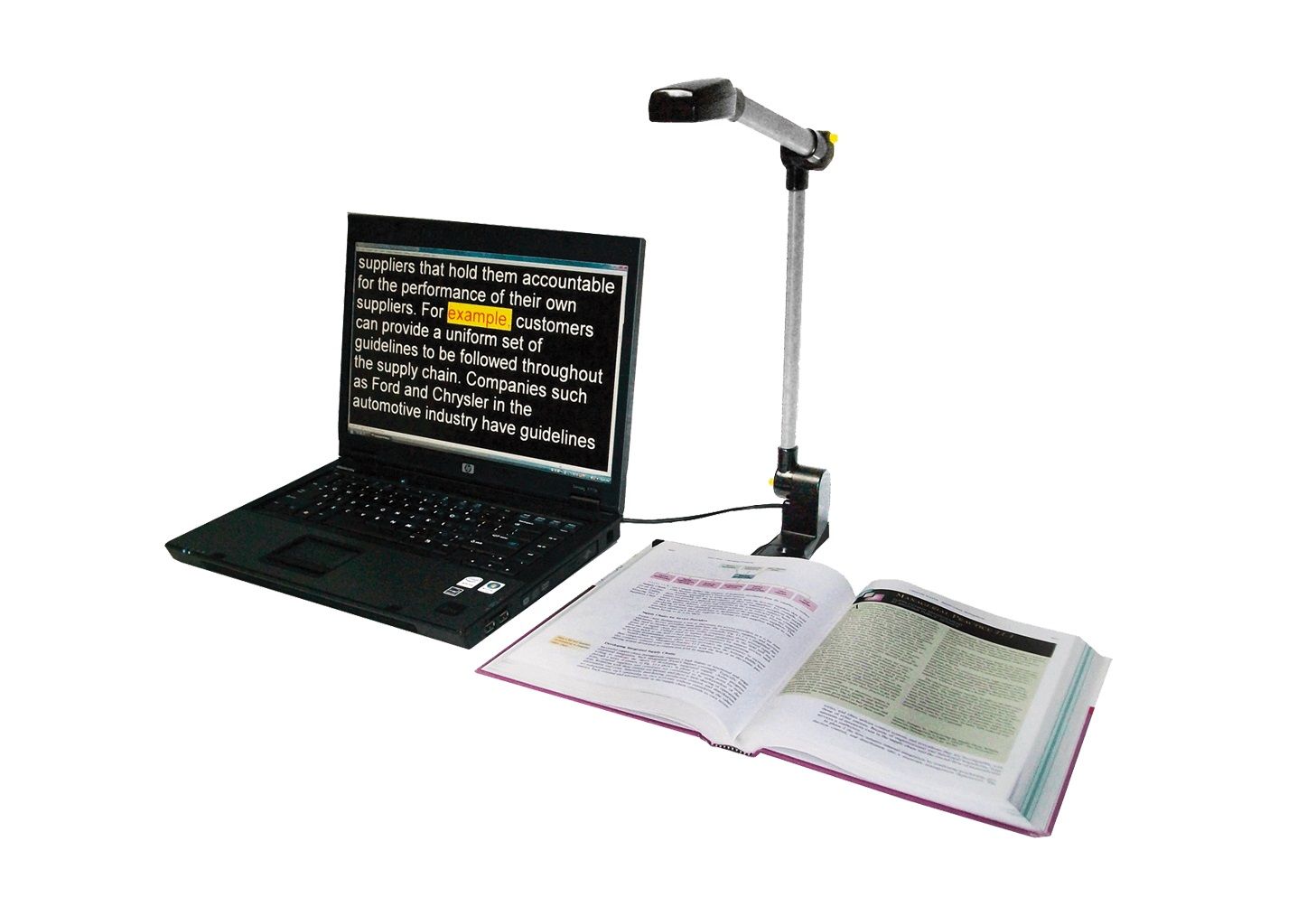 При необходимости портативное устройство увеличивает и переформатирует печатный текст.