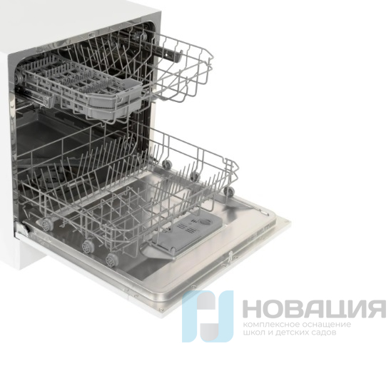 Машина с конденсационной сушкой поможет быстро очистить поверхность посуды после использования. Расход воды составляет 8 л за 1 цикл. Предусмотрена защита от протечек.