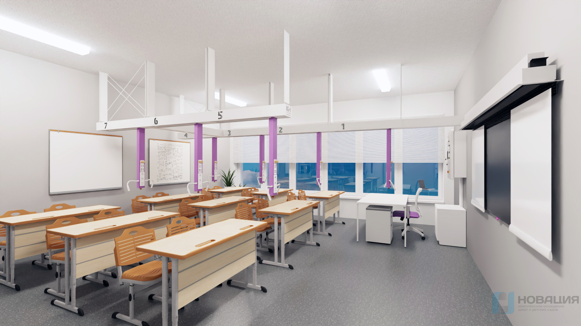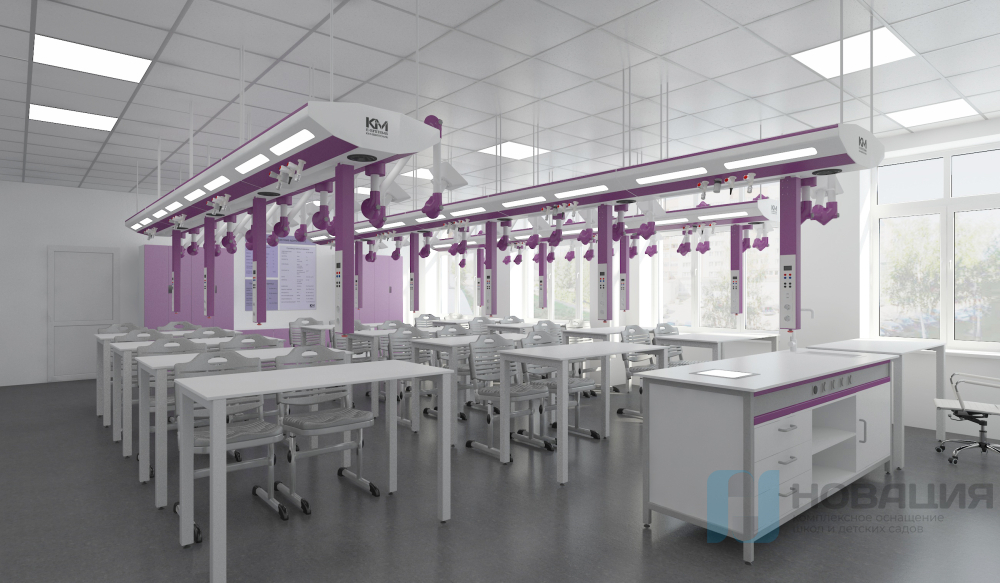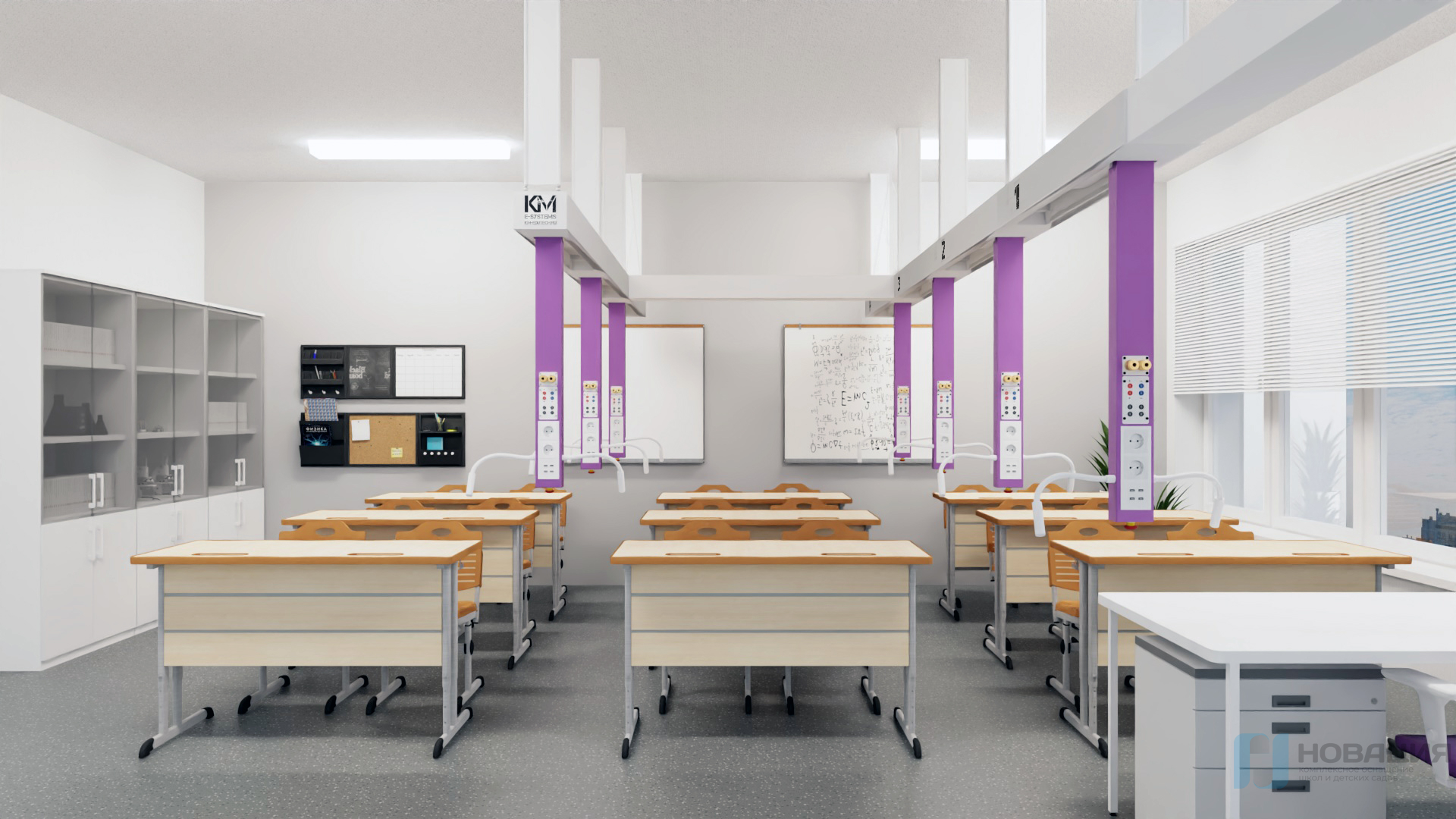 Потолочная система электроснабжения представляет собой современное решение для образовательных помещений — лабораторий, мастерских и учебных классов.