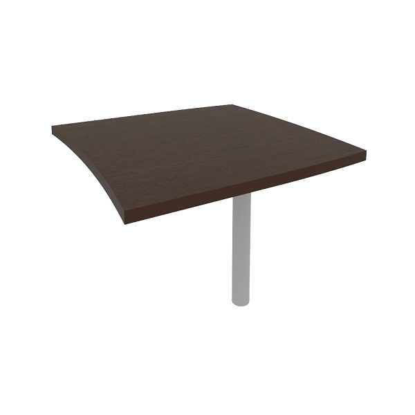 Брифинг-приставка для криволинейного стола руководителя поставляется в комплекте с одной хромированной опорой из трубы круглого сечения (76х76х729 мм, цвет серый). Предусматривается регулировка опоры под неровности покрытия. Поверхность из ЛДСП отделана кромкой (0,4 и 2 мм). Асимметричные края приставки довершают облик основного предмета мебели.