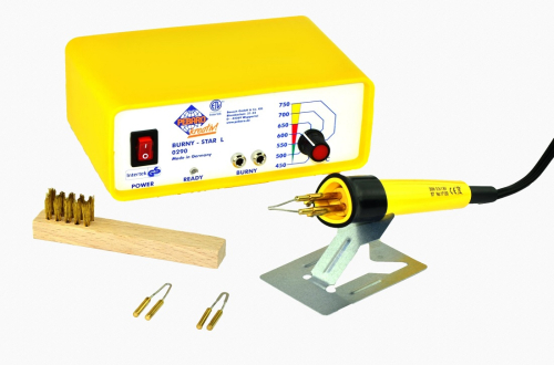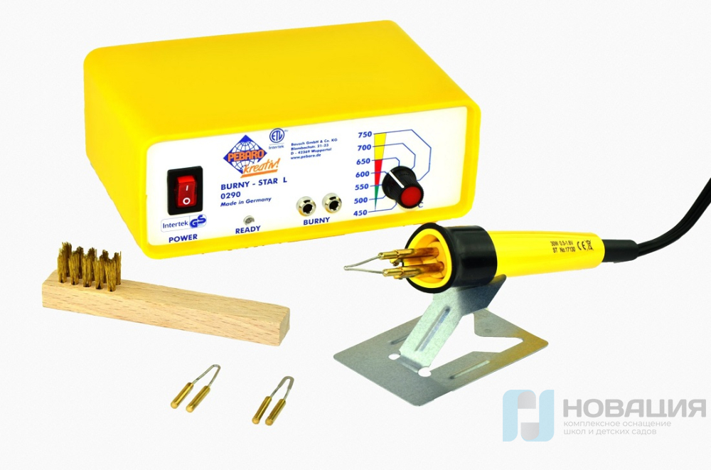 Выжигательный аппарат с регулятором температуры в пределах 450°-750° С — надежный прибор для увлекательных занятий в младшей школе.