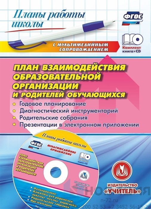 Комплект (книга + диск) знакомит педагогов с разнообразными методами, приемами, технологиями психолого-педагогического взаимодействия с родительской общественностью и семьями обучающихся, с формами планирования работы, актуализирующей проблемы родительской компетентности, направленной на создание единого воспитательного пространства, соответствующего требованиям ФГОС. Предложенные материалы позволят повысить эффективность учебно-воспитательного процесса, обогатить опыт педагогической культуры родителей, что в целом поможет классному руководителю превратить каждую встречу в полезный и конструктивный диалог партнеров - школы и семьи, всецело заинтересованных в воспитании и развитии здоровой, образованной, творческой личности школьника.