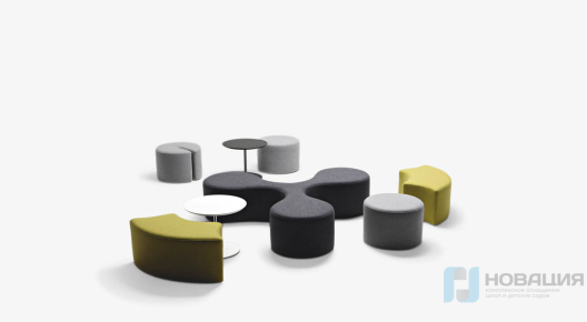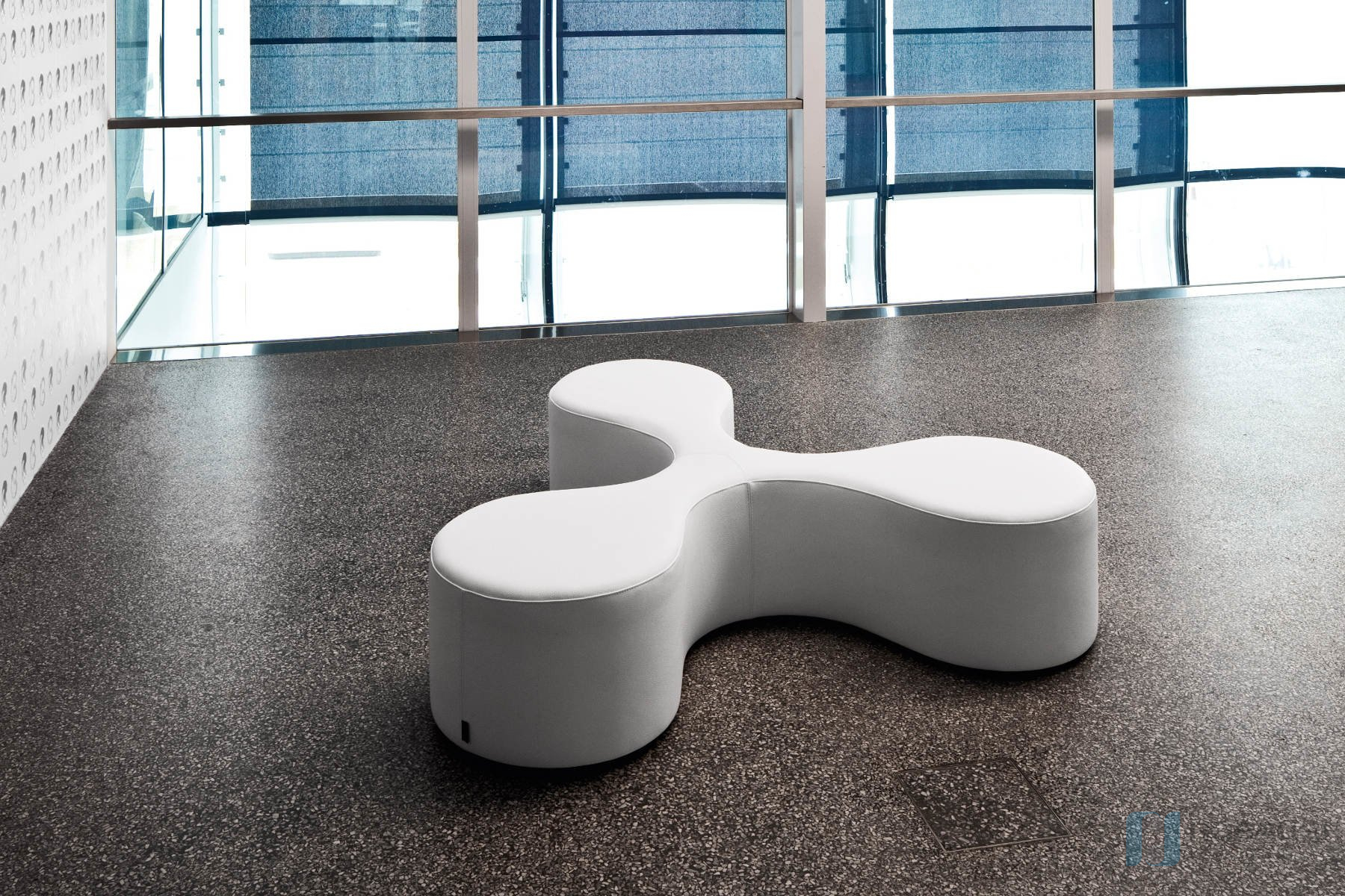 Пуф без спинки и сиденья изготовлен в форме спиннера. Рассчитан на 3-х человек. Материал обивки подходит для влажной уборки.