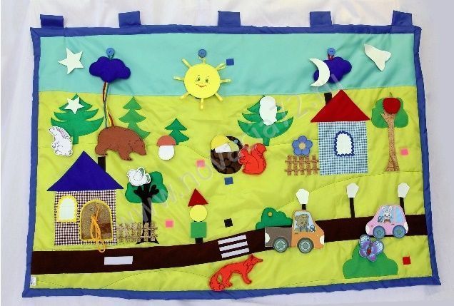 За счет дополнительного комплекта навесных элементов, имеющих светопоглощающее покрытие (т. е. светящихся в темноте), развивающий коврик "День - Ночь" позволяет знакомить детей с понятием смены дня и ночи, космические тела и т.п. Отличный помощник в эмоциональной разгрузке ребенка перед сном.