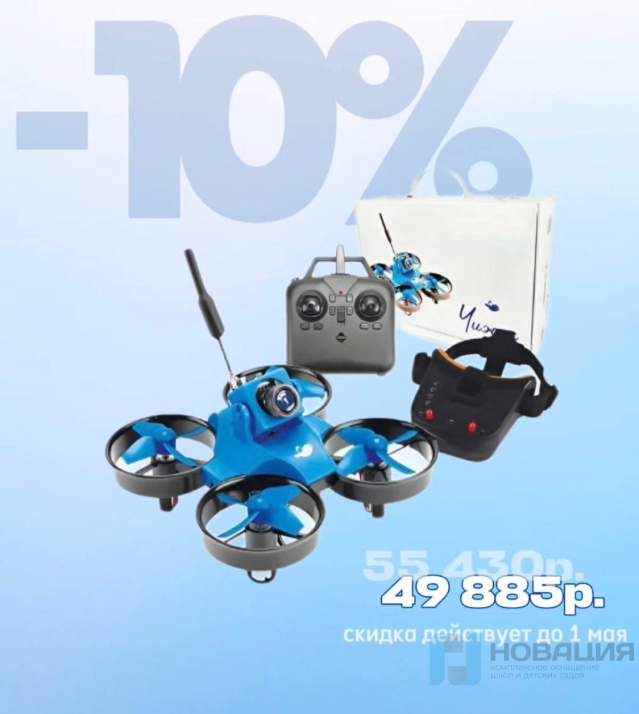 Система передачи данных FPV включает камеру дрона, шлем с двумя антеннами для надежного сигнала и аккумулятором на 2,5 часа автономной работы, а также видеопередатчик с минимальным уровнем задержки сигнала. Это создает условия для реалистичного восприятия пространства и точного контроля над полётом.