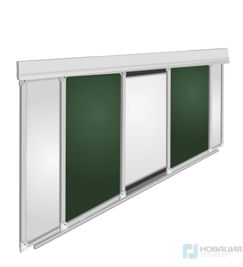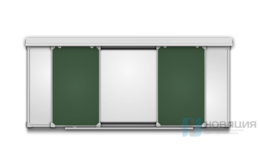 Включает 4-е поверхности для письма мелом или маркерами, две из которых двигаются по рельсам, скрывая центральную интерактивную доску. Боковые доски жестко закреплены на стенах, а верхние мобильны и легко сдвигаются.