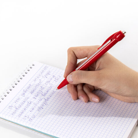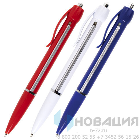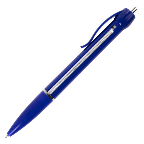 Ручка имеет непрозрачный пластиковый корпус ассорти. Пишущий узел 0,7 мм создает ровную линию 0,35 мм. Цвет чернил - синий. Сменный стержень.