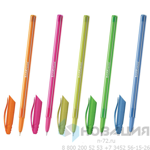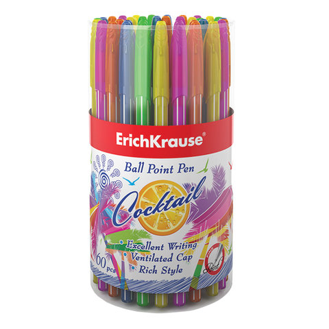Ручка шариковая ERICH KRAUSE "Cocktail", СИНЯЯ, корпус ассорти, узел 0,6 мм, линия письма 0,32 мм, 33518