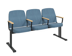 Стул для актового зала состоит из 3-х секций с отдельными сиденьями и спинками на металлокаркасе. Зрительные места разграничиваются подлокотниками из труб, все углы плавные. Между верхней стороной спинки и рамой остается место для удобства хвата при перемещении. Сиденья и спинки мягкие прямоугольные, разделяются зазорами. Края сиденья скруглены. Конструкция стоит на 2-х опорах-стойках.