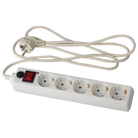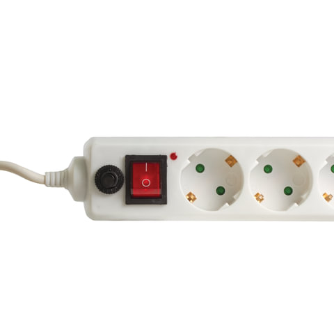 Сетевой фильтр SONNEN U-351, 5 розеток, с заземлением, выключатель, 10 А, 1,8 м, белый, 511424