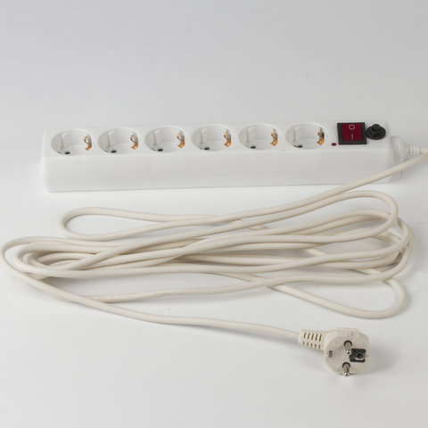 Имеет возможность крепления на стену. Количество розеток – 6. Каждая розетка оснащена заземляющими контактами и защитными шторками. Корпус выполнен из негорючего ABS-пластика. На корпусе расположен выключатель и автоматический предохранитель. Толщина жил кабеля – 3х0,75 мм, длина кабеля – 5 м. Материал жил кабеля – медь. Номинальная частота – 50 Гц, номинальное напряжение – 220 Вт, максимальный ток нагрузки – 10 А, суммарная мощность нагрузки – 2200 Вт.