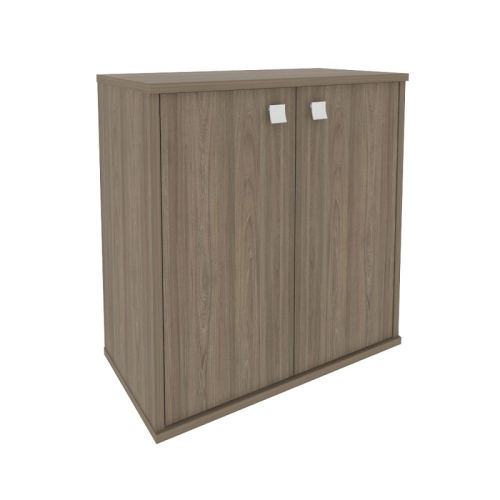 Широкий корпус шкафа для документации, технических средств и канцелярии представлен закрытым фасадом. 2 створки распашной двери дополняются фурнитурой. Поверхности из ЛДСП отделаны кромкой (0,4 и 2 мм) в цвет мебели. Опоры низкого шкафа подстраиваются под неровности покрытия пола.
