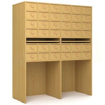 2-секционный шкаф оснащается 36-ю ячейками с выдвижными ящиками и ручками.