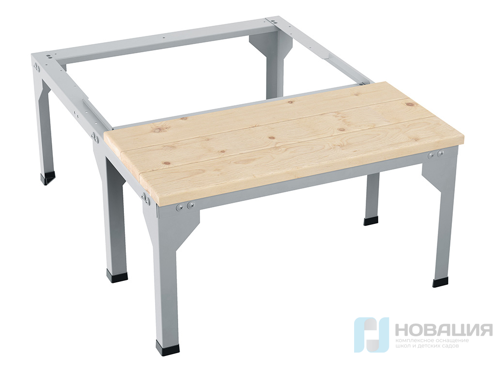 Скамья крепиться к шкафу. Каркас изготовлен из металла, сидение - из шлифованной сосны.