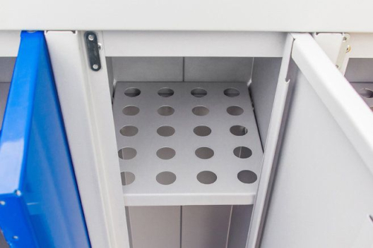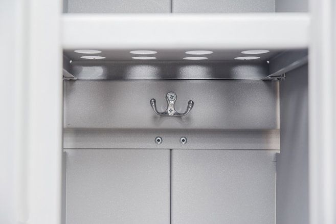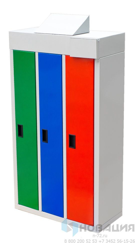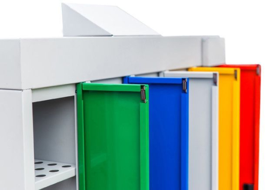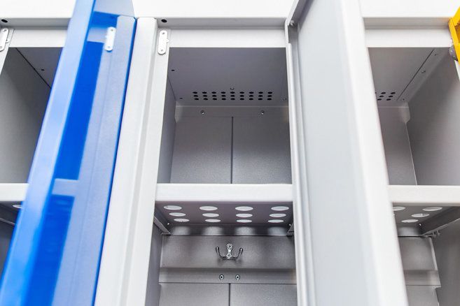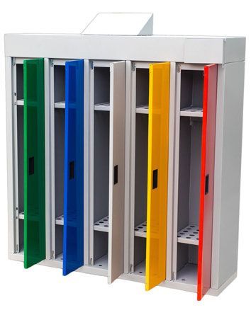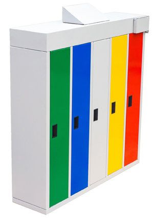 Закрытый стальной корпус оснащается отдельными секциями, которые запираются при помощи одностворчатых дверей.