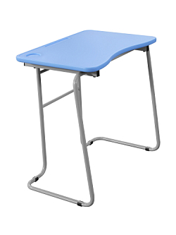 Легкая конструкция представляет собой цельнометаллический каркас асимметричной формы, с поперечной перекладиной. Сверху каркас покрыт эпоксидно-полиэфирной краской, устойчивой к воздействию влаги. Во избежание повреждения напольного покрытия внизу установлены 4 заглушки. Столешница парты выполнена из березовой фанеры с покрытием из пластика.