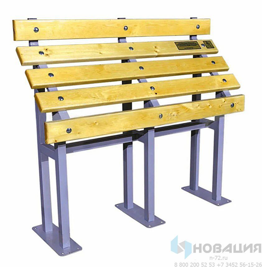Скамейка состоит из корпуса с шестью ножками и деревянного настила. Предназначена для людей, имеющих заболевания опорно-двигательного аппарата и испытывающих затруднения при подъеме с обычной скамьи.