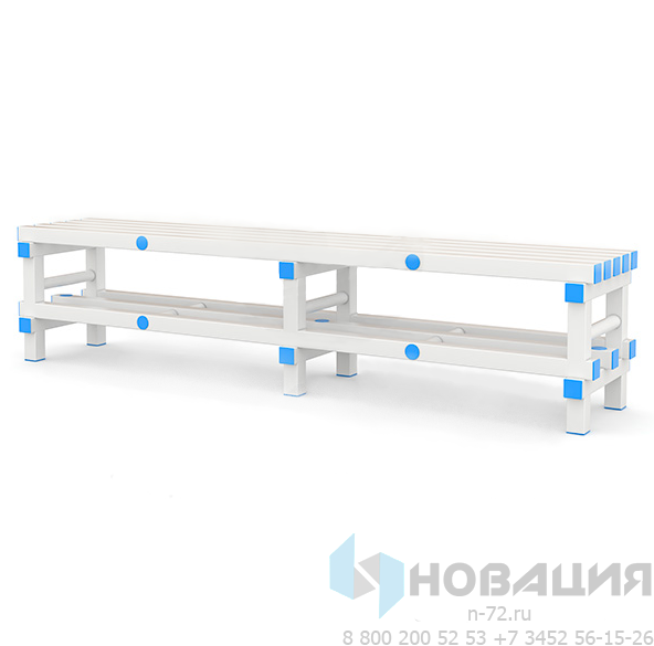 Скамейка используется в спортивном зале школы или детского лагеря.