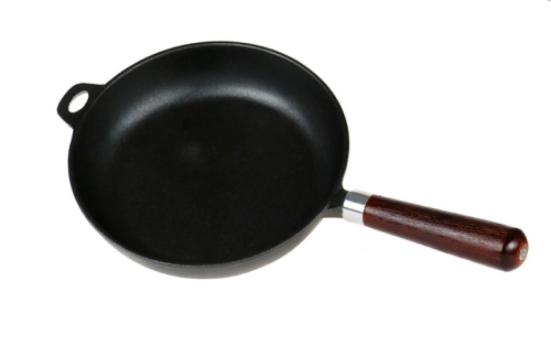 Сковорода чугунная изготовлена из экологически чистого материала. Сохраняет тепло, толстое дно равномерно распределяет температуру. Удобная деревянная ручка, не съемная.