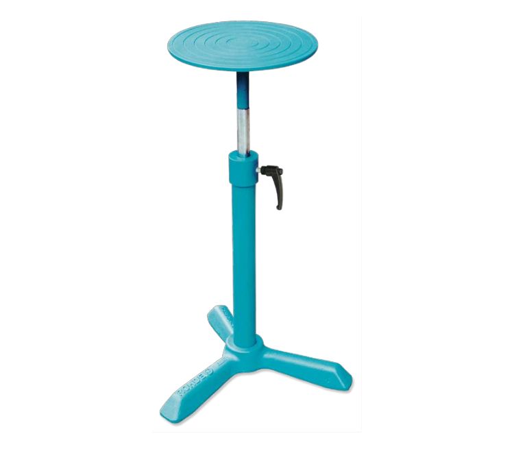 Скульптурный станок с подшипниками вращается плавно; при необходимости фиксируется с помощью верхнего винта. Высота конструкции меняется. Массивное изделие устойчиво и готово к длительному функционированию. Станок для керамических работ используется в творческой мастерской, на уроке технологии.