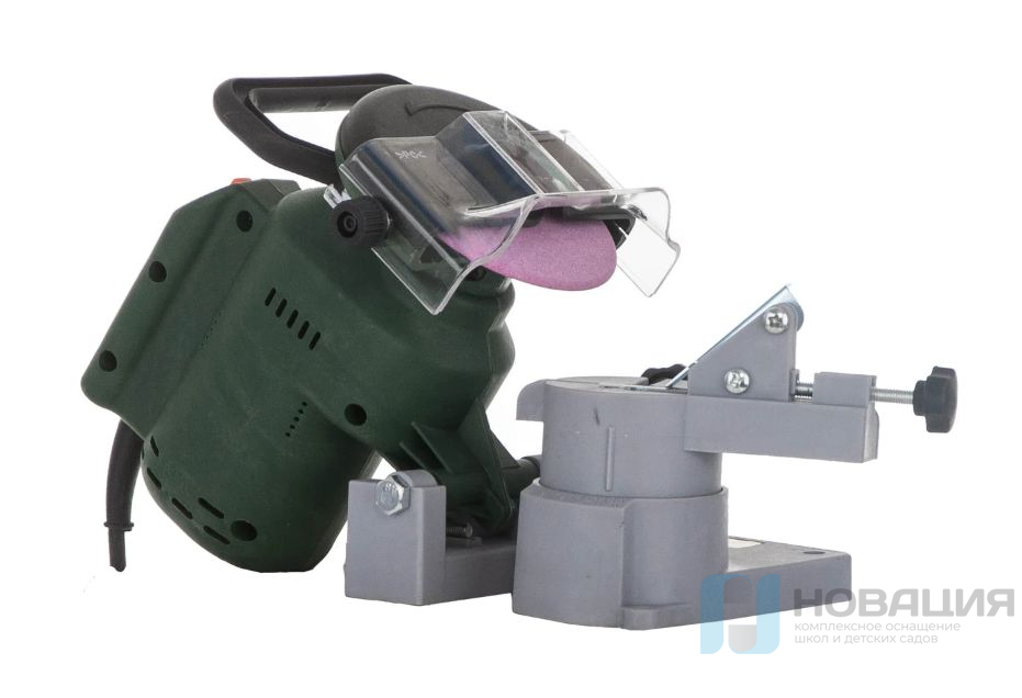 Станок затачивает цепи бензиновых и электрических пил. Поставляется в пластиковом корпусе. Основание металлическое с отверстиями для монтажа к горизонтальной поверхности.