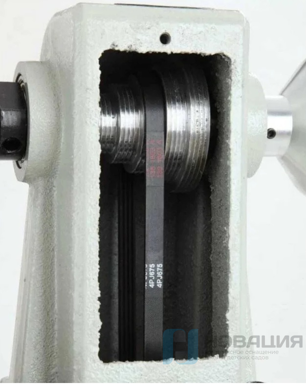 Ученики смогут самостоятельно выбирать оптимальную частоту вращения шпинделя из пяти предложенных вариантов: 680, 1000, 1420, 2000 или 2770 оборотов в минуту, исходя из типа задания и плотности используемого материала. Изменение числа оборотов производится простым перемещением приводного ремня.