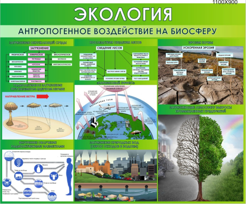 Стенд "Экология. Антропогенное воздействие на биосферу", 1100х900 мм
