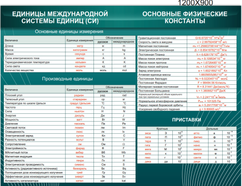 Стенд "Основные единицы величин" объединяет все известные константы и единицы измерения в одной таблице. Послужит отличным помощником учителю и замечательной подсказкой для учеников, которые самостоятельно могут обратиться к таблице на стенде при решении задач или выполнении заданий по физике.