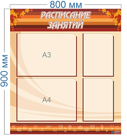 Стенд выполнен в нейтральных коричнево-бежевых тонах и впишется в любой школьный интерьер. В карманах можно расположить расписание уроков и внеклассных занятий.