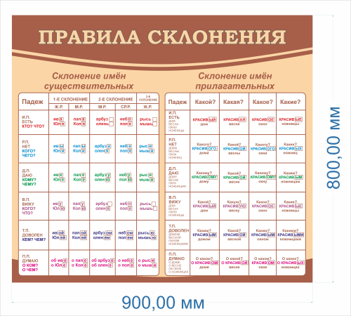 Стенд в школу Правила склонения, 0,9х0,8 м