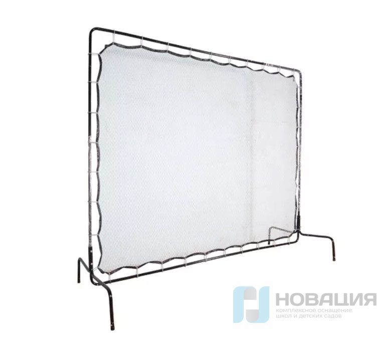 Конструкция служит тренажером для игроков в теннис и бадминтон. Рама на 2-х подставках с парными ножками оснащена сеткой. Углы каркаса закруглены. Степень натяжения полотна можно отрегулировать.