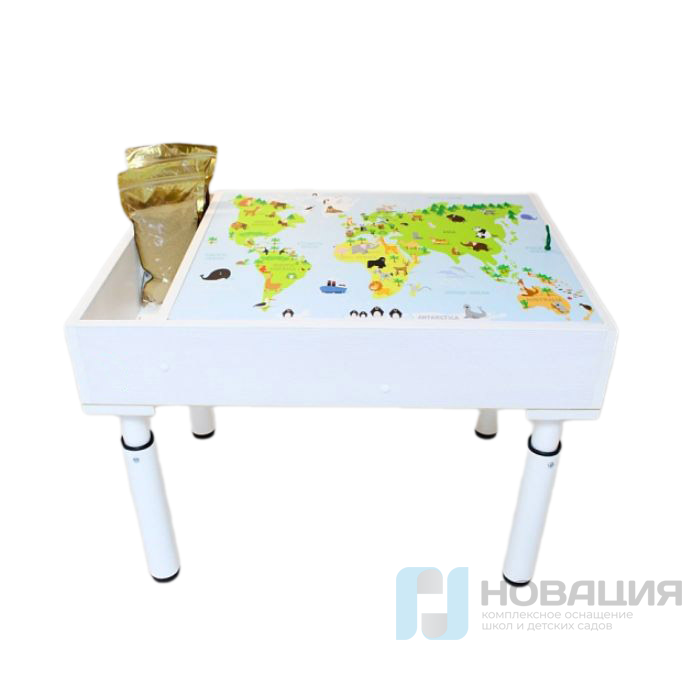 Столик для рисования песком размещается в сенсорной комнате или кабинете психолога. Мебель используется во время игр, творческих занятий, терапии. Контакты с песком развивают мелкую моторику и речь, помогают снять напряжение. Сыпучий материал преобразуется в геометрические формы. На нем можно писать буквы и цифры, выводить узоры.
