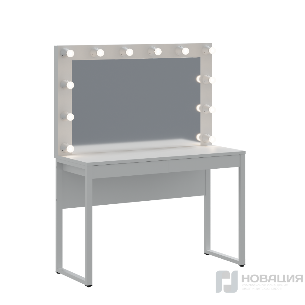 Зеркало: толщина — 4 мм; вокруг зеркала расположены 12 светодиодных ламп для подсветки.