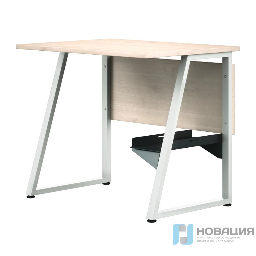Одноместный стол для компьютерного класса изготовлен по ГОСТу. Каркас разборный, из труб прямоугольного сечения (40х25х1,5 мм). Боковые опоры выполнены в форме трапеции. Подпятники компенсируют неровности напольного покрытия и берегут его от царапин.