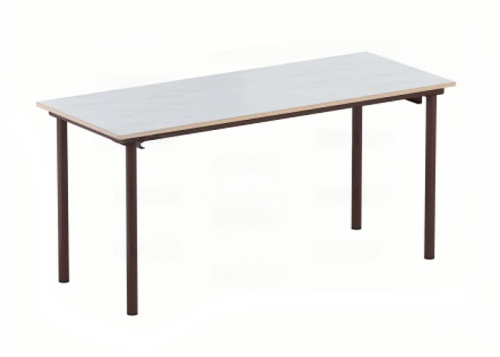 Столешница изготовлена из ДСП и облицована пластиковым покрытием. Торцы обрамлены ПВХ-кромкой. Под столешницей размещаются металлические кронштейны для подвешивания сидячих мест.